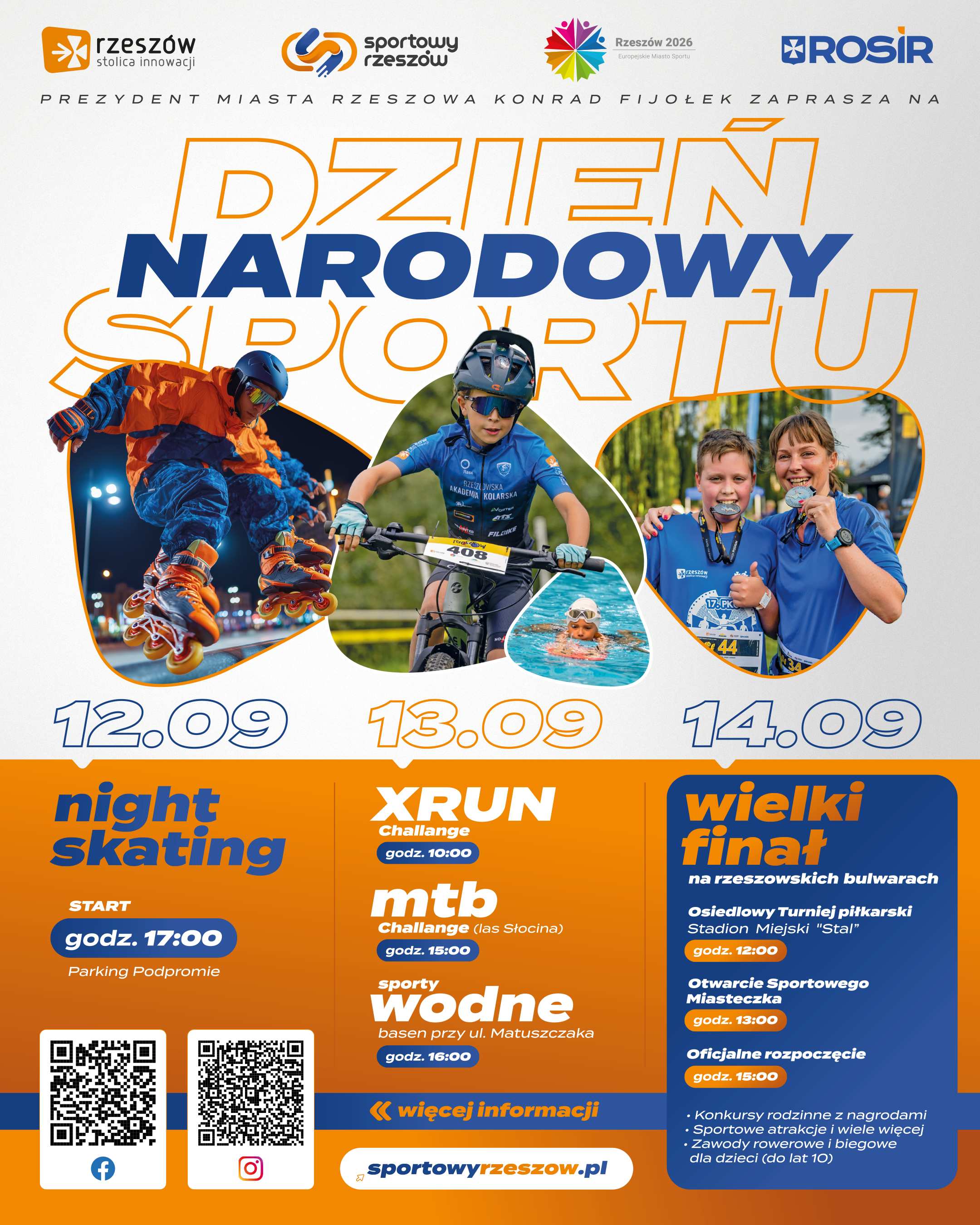 Już w najbliższą niedzielę 14 września br., zapraszamy na wielki finał tegorocznej edycji Narodowego Dnia Sportu w ramach którego otwarte zostanie sportowe miasteczko na bulwarach rzeszowskich. To będą prawdziwe „dni otwarte” rzeszowskiego sportu podczas których każdy mieszkaniec naszego miasta będzie miał możliwość poznać sportową ofertę Rzeszowa.